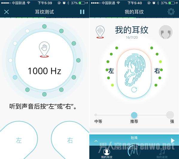 1、测试听力:用户打开手机APP连接上自己的耳机,根据提示来完成每一步的动作,借助麦克风会评估用户所处的环境背景噪音,还会根据耳机型号引导用户来调整自己的手机音量。测试的时间是十分钟左右,让用户避免了不适感。