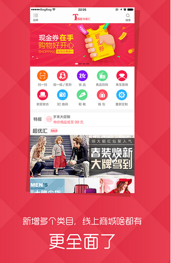 1. 在体验刺激、好玩的购物中,通过拼、夺、砍等方式享受更多的实惠;2. 通过整合线下的活动资源,每天为用户推出不同的优惠活动信息,天天有惊喜;